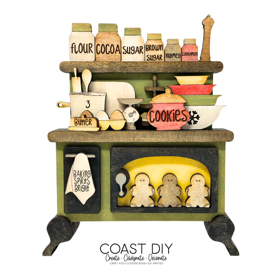 Although not included, the stove has been sized to go nicely with the Baker Santa. I've also created a tutorial around this design and a link will be included in your kit.