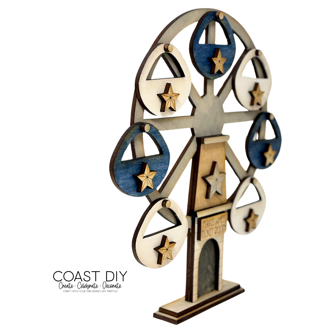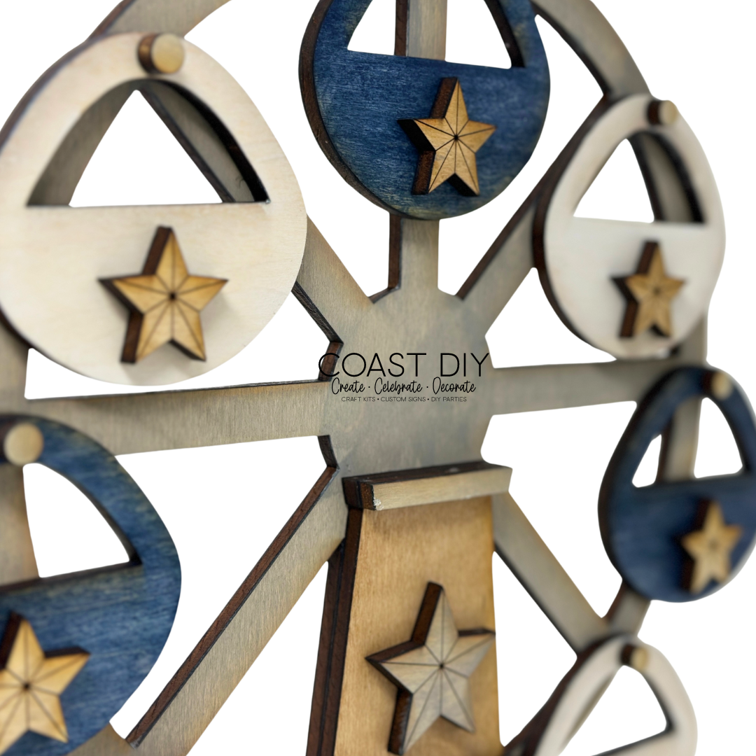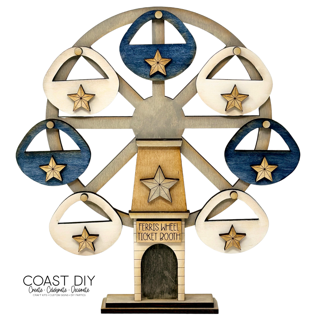 You could leave off the stars for a more generic ferris wheel - and also decoupage the cars for a fun look.