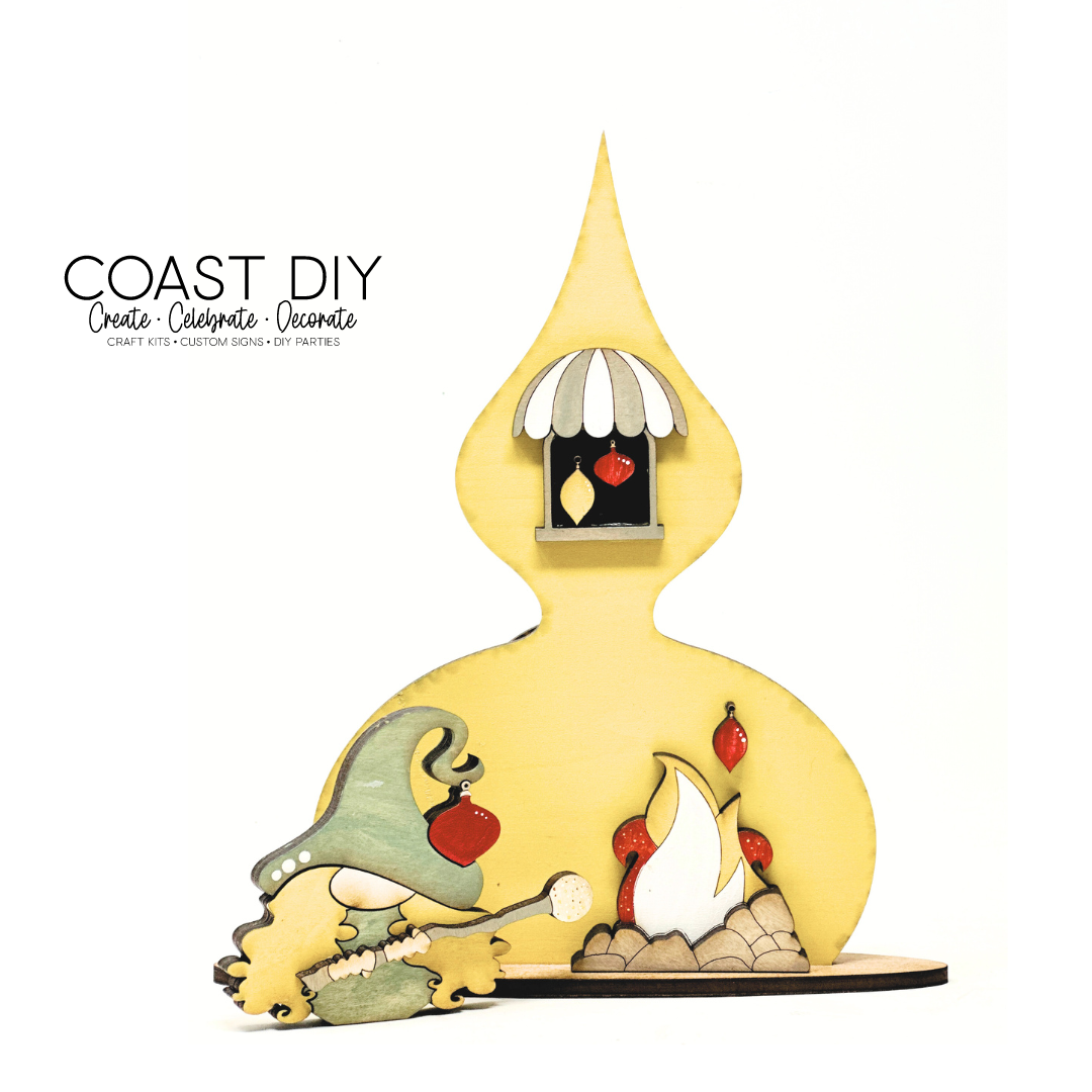 I painted this with the Vintage Christmas Stain kit which you can grab separately. The only thing is I did use black paint for the windows - versus stain. It helped make the ornaments pop. Any black paint will do.