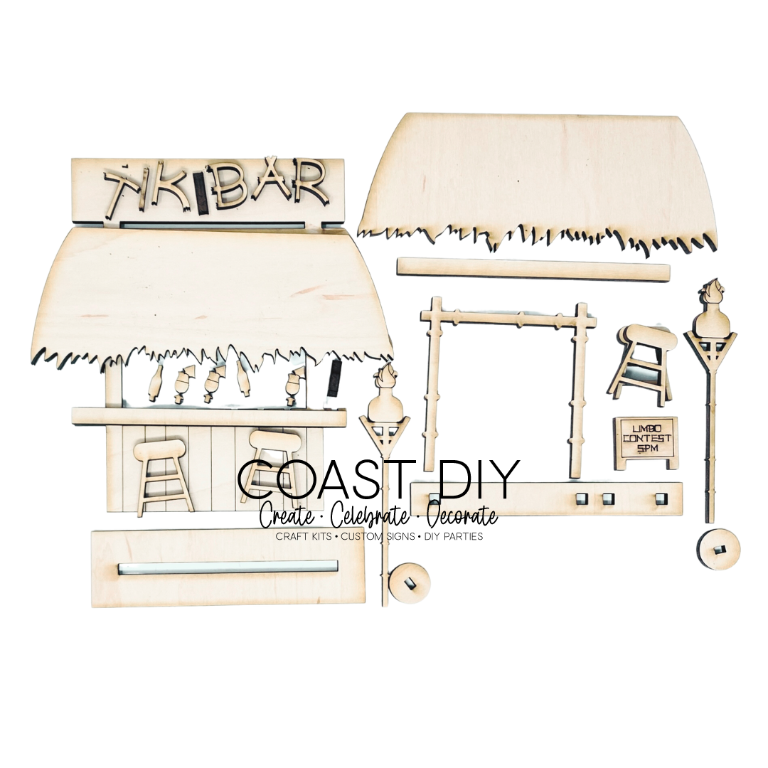 As part of the Seaside Village, the Tiki Bar is the perfect place to relax and have a drink. Lit up by tiki torches, you can even try your hand at a little limbo. The design has a center piece and then you get details for each side that makes the design two sided. Each side looks the same but you could add different colors for variety.