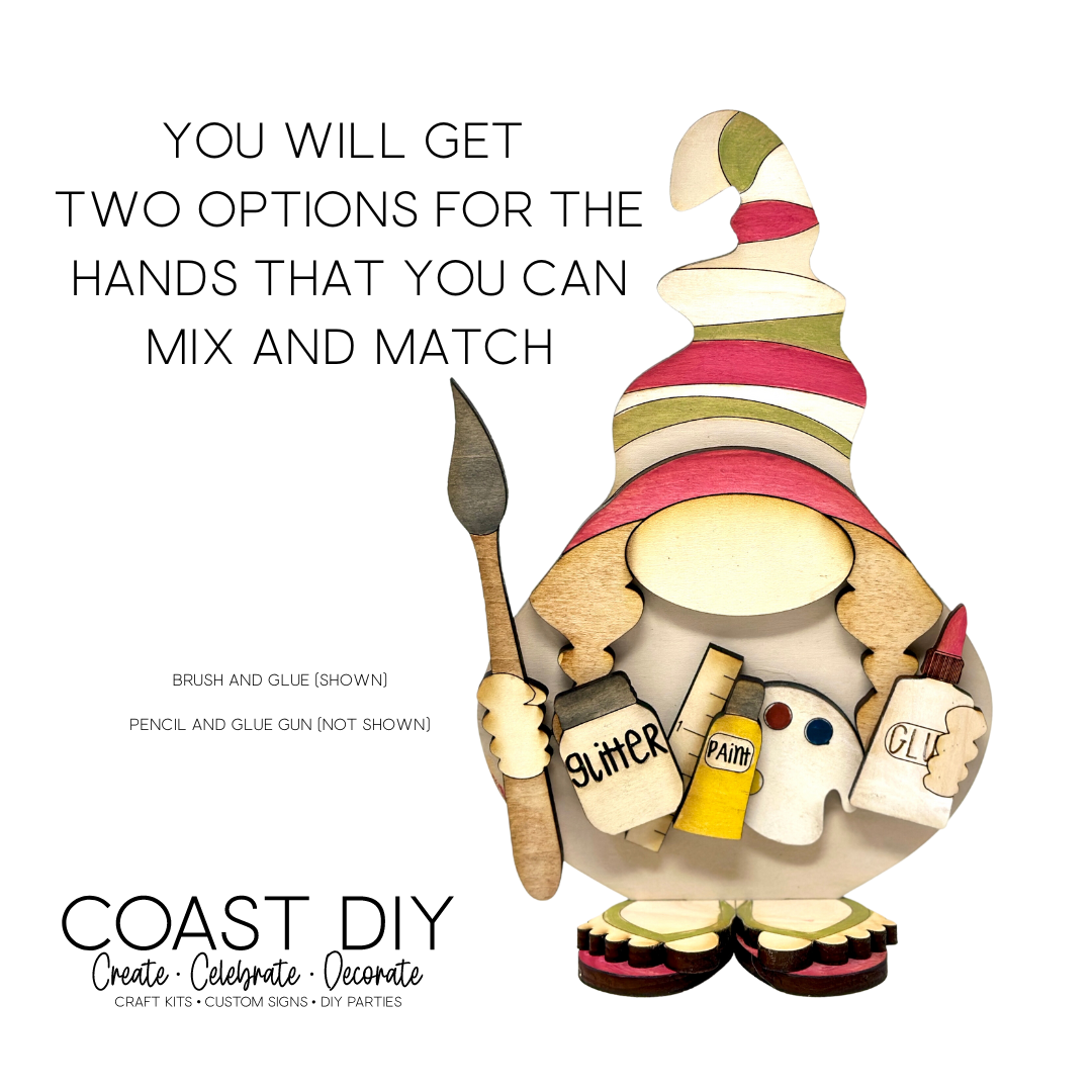 Your crafty gal and tote comes with a ton of craft supplies to hold and fill up her craft tote so get ready to have a blast. You get the following designs without hands on them: scissors, two layered paper cutter, glue, water colors, paint brush, ruler, button, glitter, paint, hammer, angled brush, pencil, glue gun, crochet hook, small yarn, paint tube, buttons, large yarn, paint bottle, paint palette, box labeled ephemera, and two yarns and hooks together.