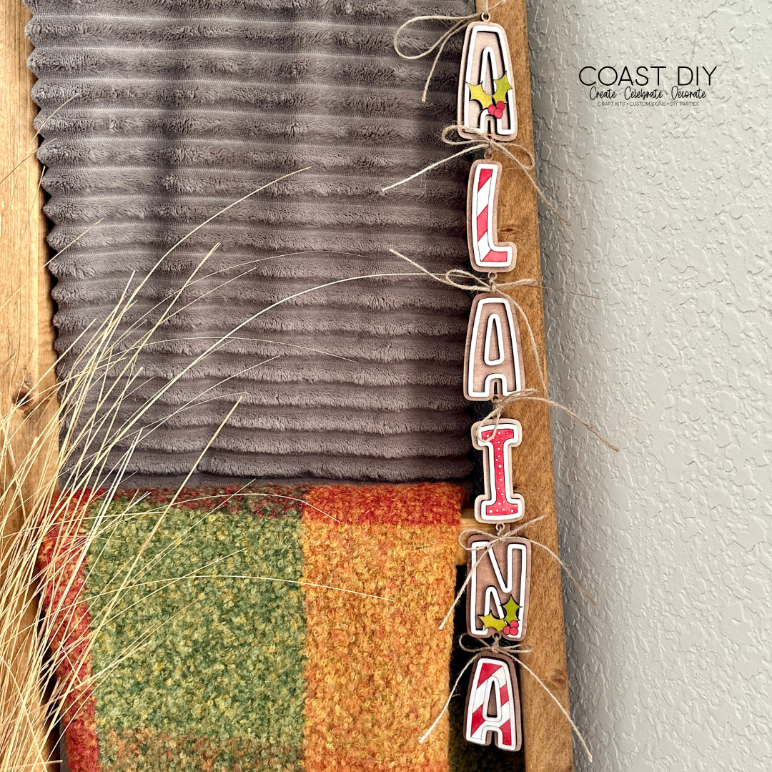 Make your own words from these Gingerbread Letter Ornaments! You can choose from one of 4 different designs and then choose if the letter has one hole at the top or two hole (top and bottom). The designs include a Plain Outline, Holly, Candy Stripe and a Fish Scale.