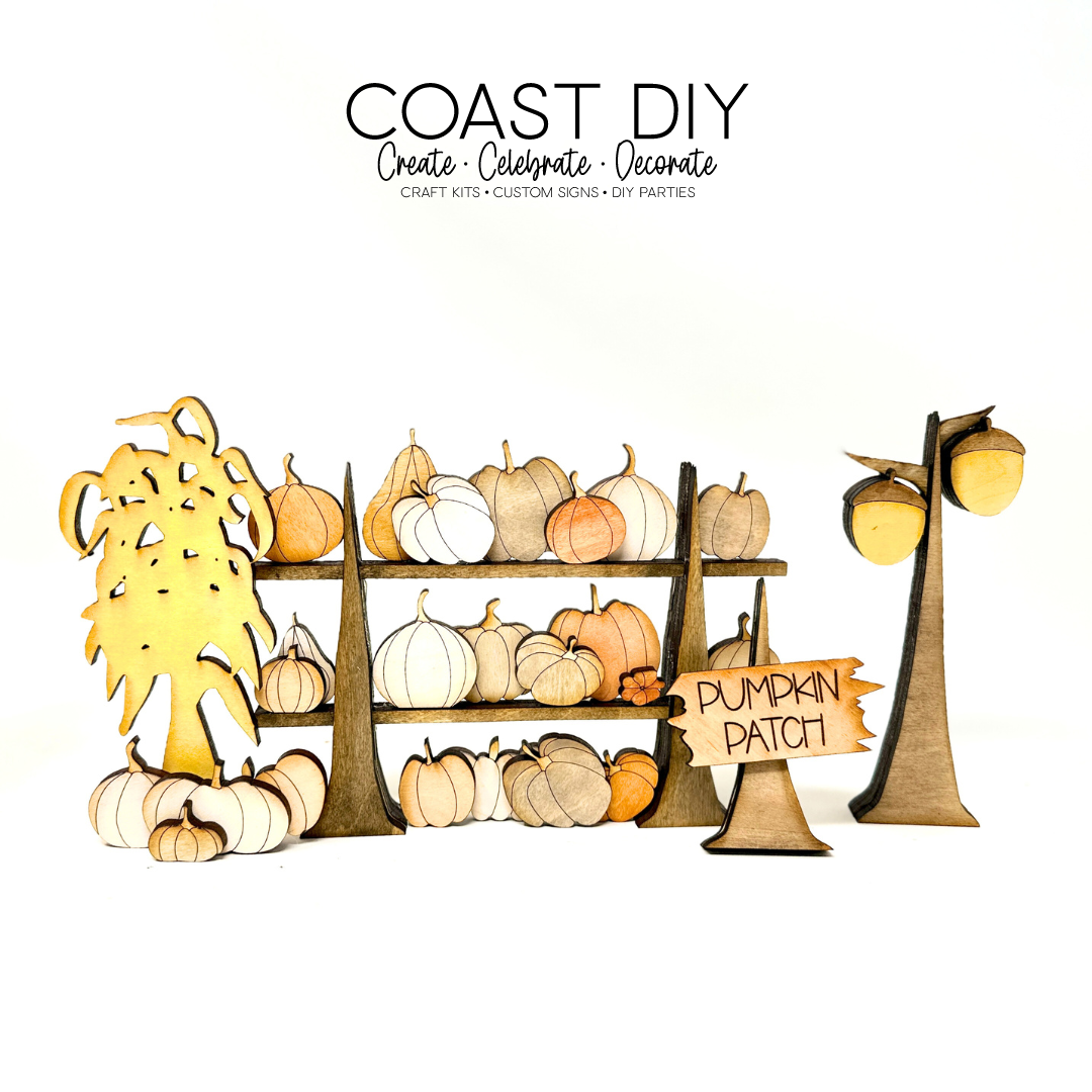 As part of the Autumn Village, the pumpkin stand design is 5x7" and is multiple layers when complete.