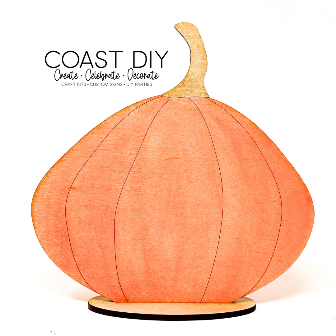 This kit allows you to make your own Jack-o-lanterns. You get two base pumpkins with score lines for the ribs. They are 10.2x and 7.4" tall. With the pumpkins you get lots of pieces to decorate their faces including several sets of eyes, noses, and mouths. You can even decorate both sides. Or want a pumpkin for all of fall? Leave one side plain and do a jack-o-lantern on the back!