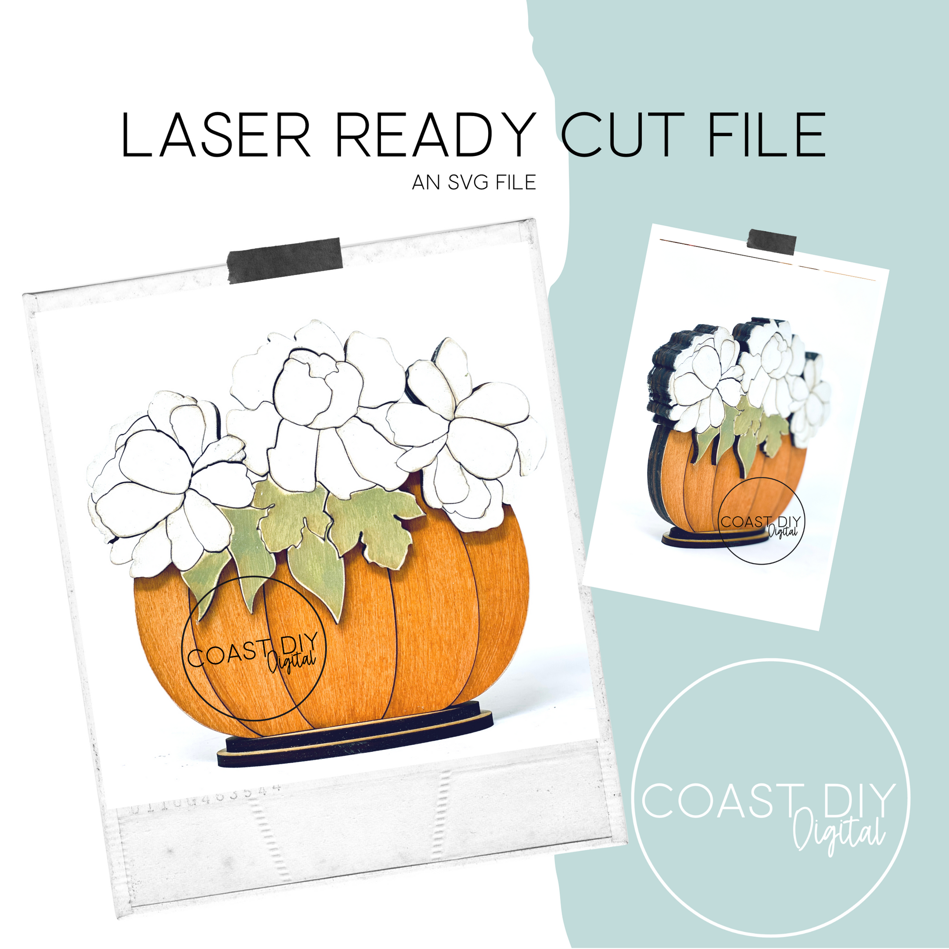This listing is for a DIGITAL svg file which will allow you to make the Peonies in a Pumpkin table centerpiece. The design is set up for maximum texture and dimension. You have 5 layers that cut on 2 glowforge sized boards. Final design is 7.2x7.8" which is perfect for a table, mantel or even shelf. There is a pdf included to give additional options for using with less wood and also make it without the pumpkin ribs so it looks like peonies in a vase to be a year round design. The design has been make for 1/4" thick wood that measures 0.20".