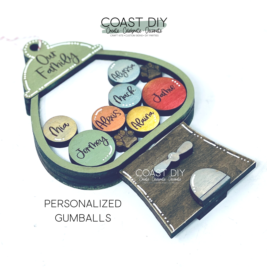 This is a 6" tall, 3.8" wide, 2-layer gumball machine. It would make a great gift tag. Note - this is NOT for the personalized names, though you can use a sharpie and write your names on the gumballs.