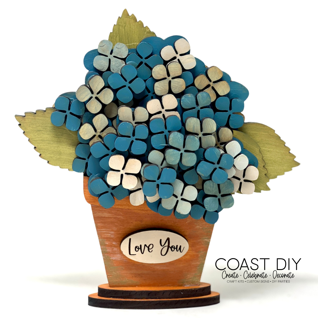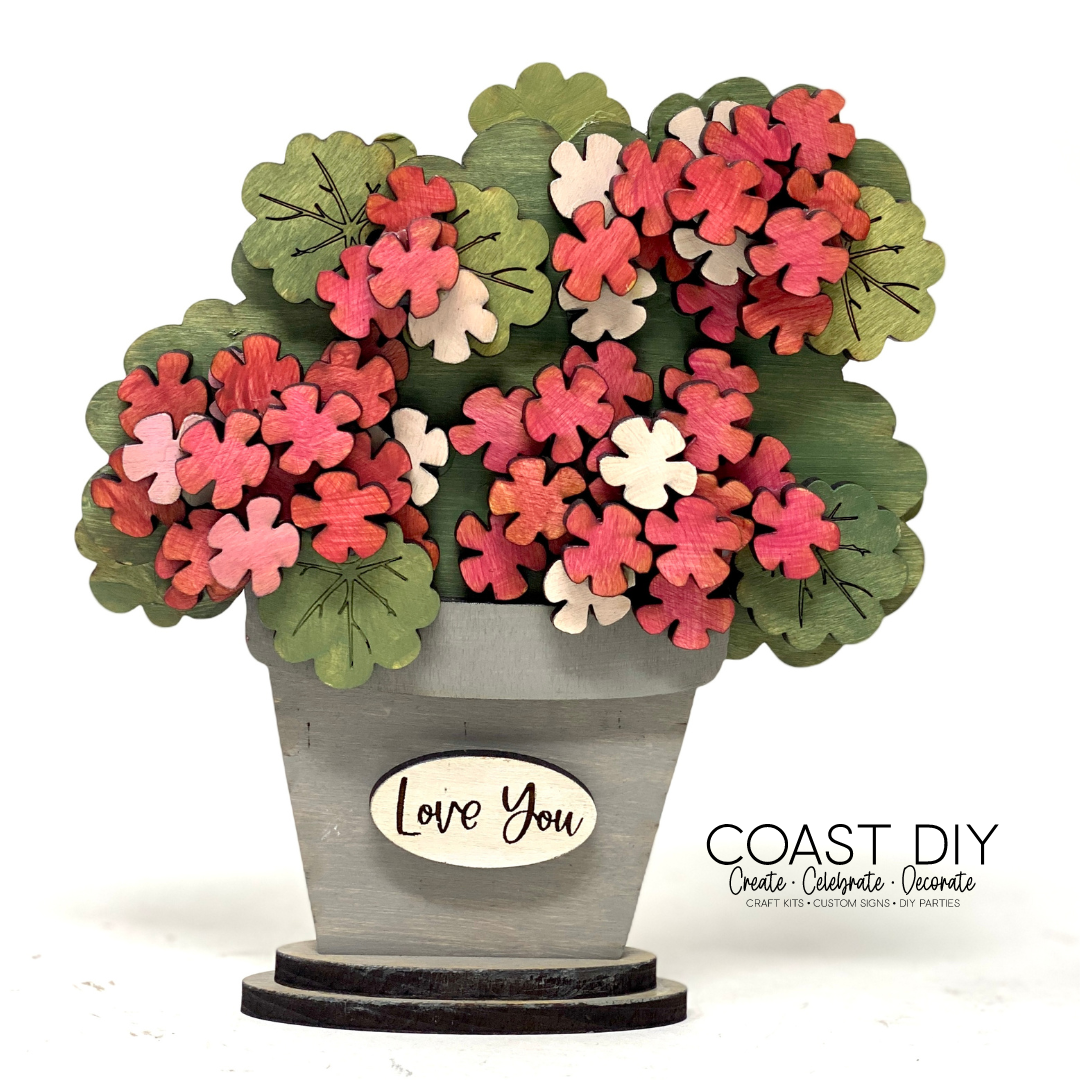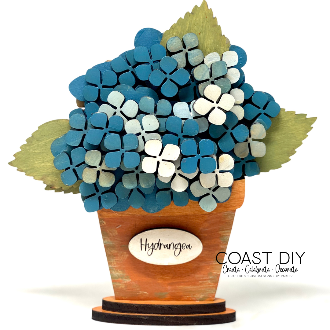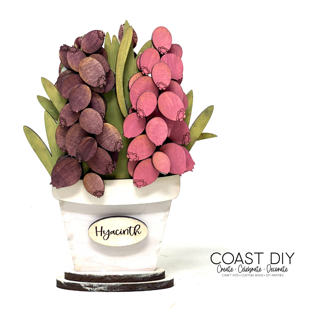 Each flower runs 5.9-6.5" tall and has a main center piece with the pot, the brims on the pot and tons and tons of leaves and flowers to design your own flowers. You will have more flowers than you need to complete each piece. Your kit will also come with a tutorial that will show you how I've assembled the designs, but there is a lot of flexibility and you can make them your own way too.