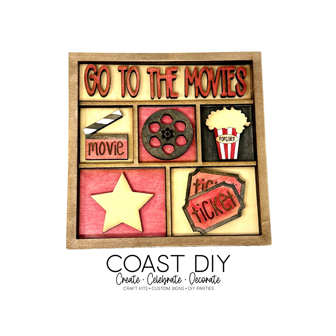 This listing is for the Go to the Movies Shadow Box Insert. You get 6 different insert backgrounds and designs with this kit including: rmovie clapper, reel, popcorn, star and tickets. You also get the words "Go to the movies". The inserts are designed to fit the Interchangeable Shadow Box (sold separately) that is 7" square. These inserts vary in size to fit that box.