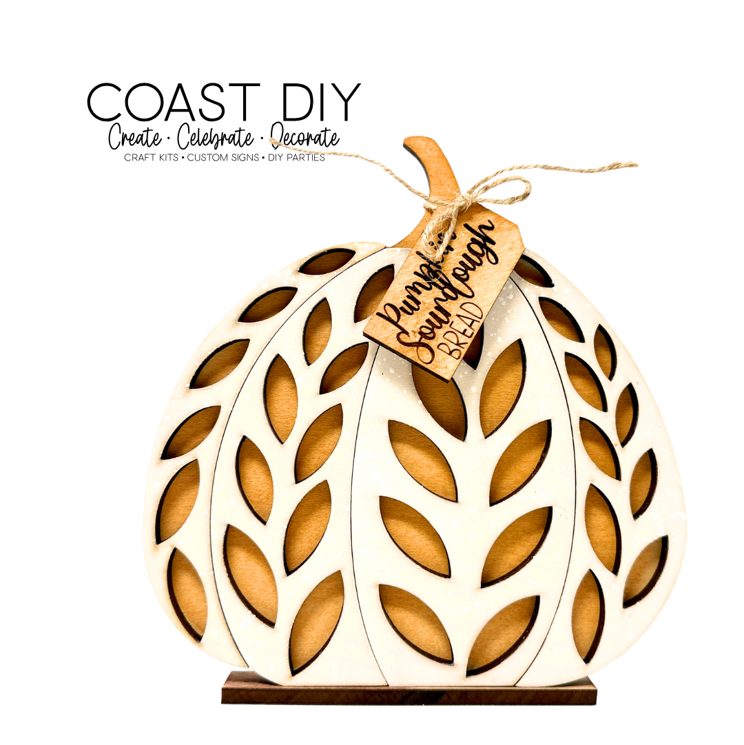 These are the cutest pumpkins! Two layers make it simple to get the look. Paint the back layer any color you want that is the stem and the inside of the pumpkin bread. then the top layer you can make look like a floured sourdough.