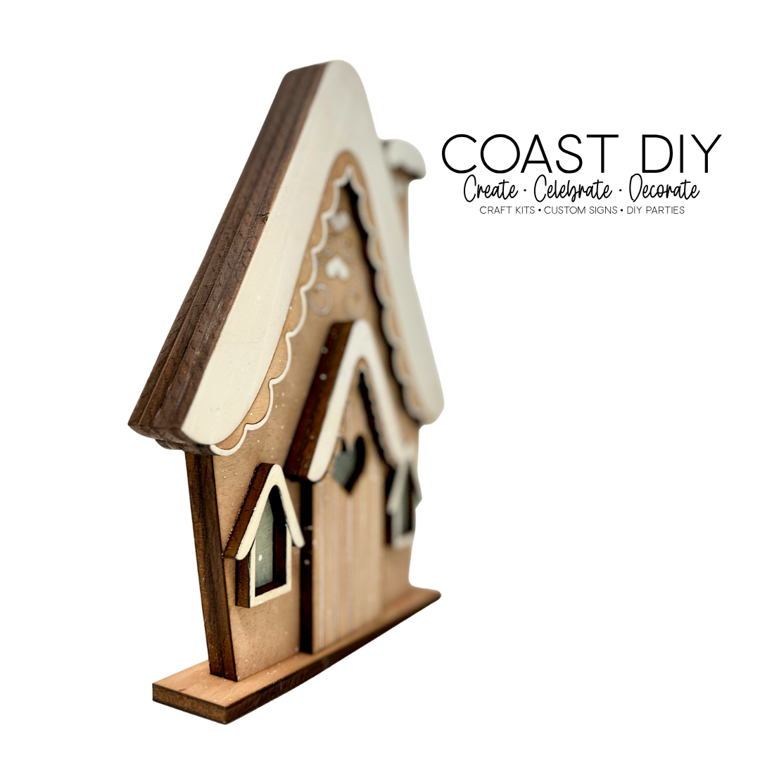 With all the look of gingerbread, this was specifically designed to be a fun addition to the Village. I've made it to look like it has frosting on the rooftops and a piping striped door. I've also added details on the front and back looking like gingerbread. With all the details, this is a precious addition to the Coast DIY Christmas Village.