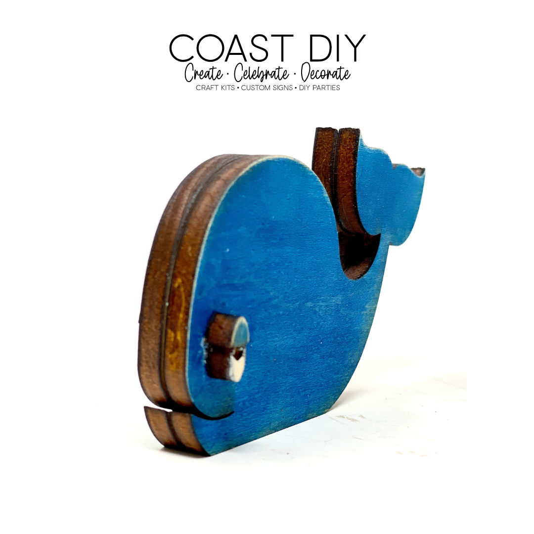 This whale is a cute addition to your coastal decor. He comes with droopy eyes and fins (not shown), so you can make him simple or whimsical - your choice. The whale is 5x3" and with two solid layers for the body, will stand on its own. Grab one, grab a ton and paint them all over your house.